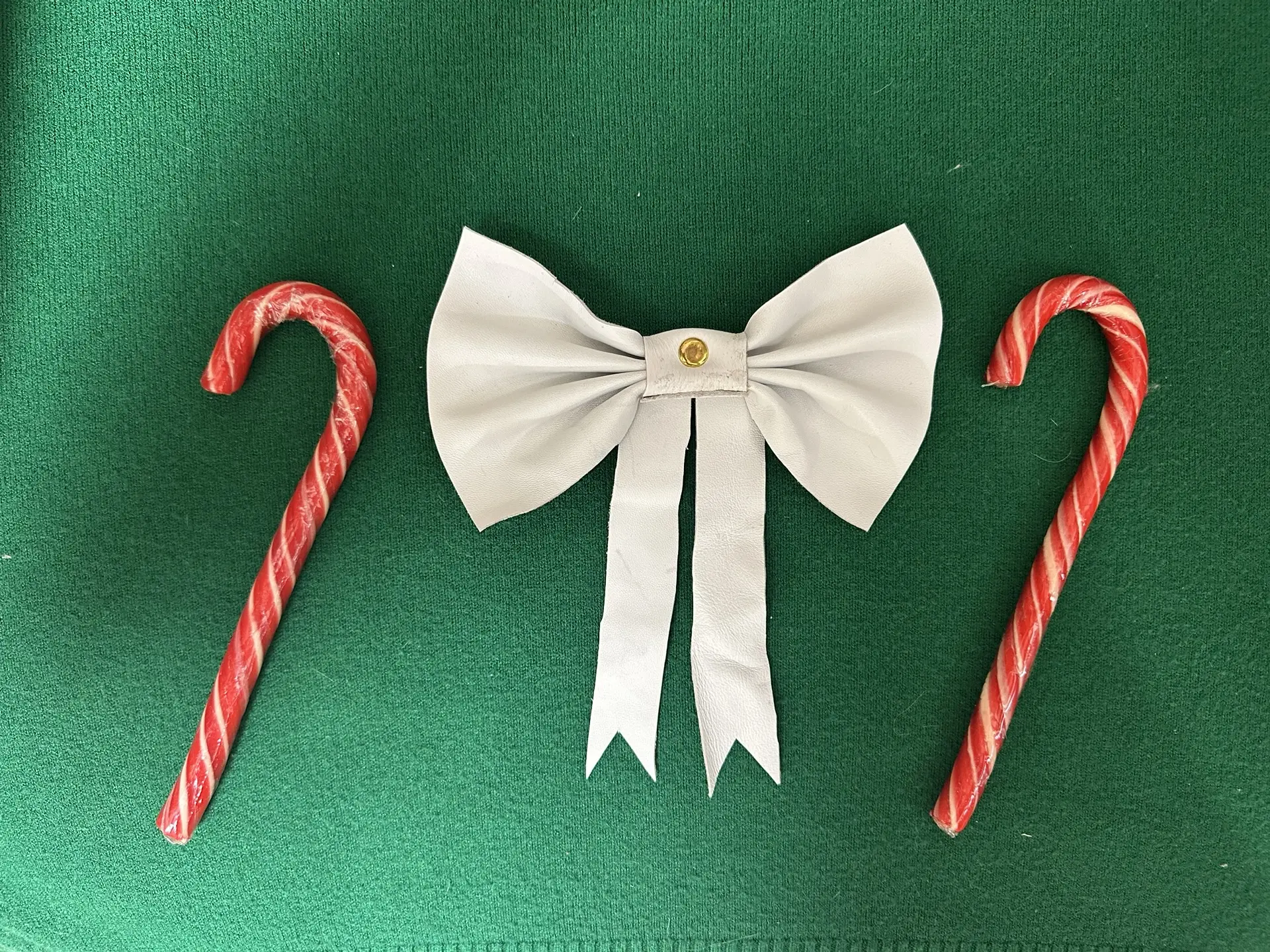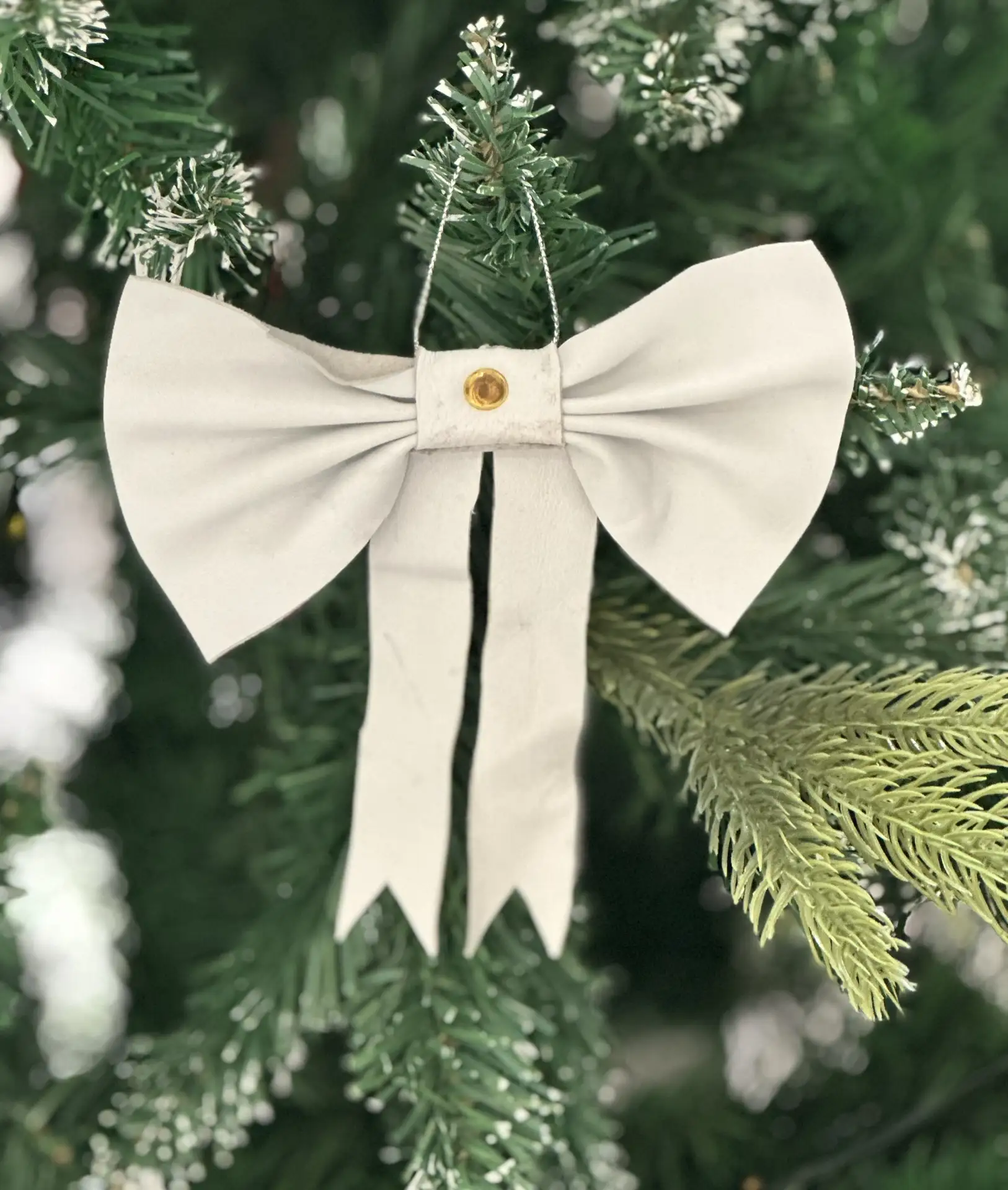 Бант, ёлочное украшение (натуральная кожа, белый, золотой)