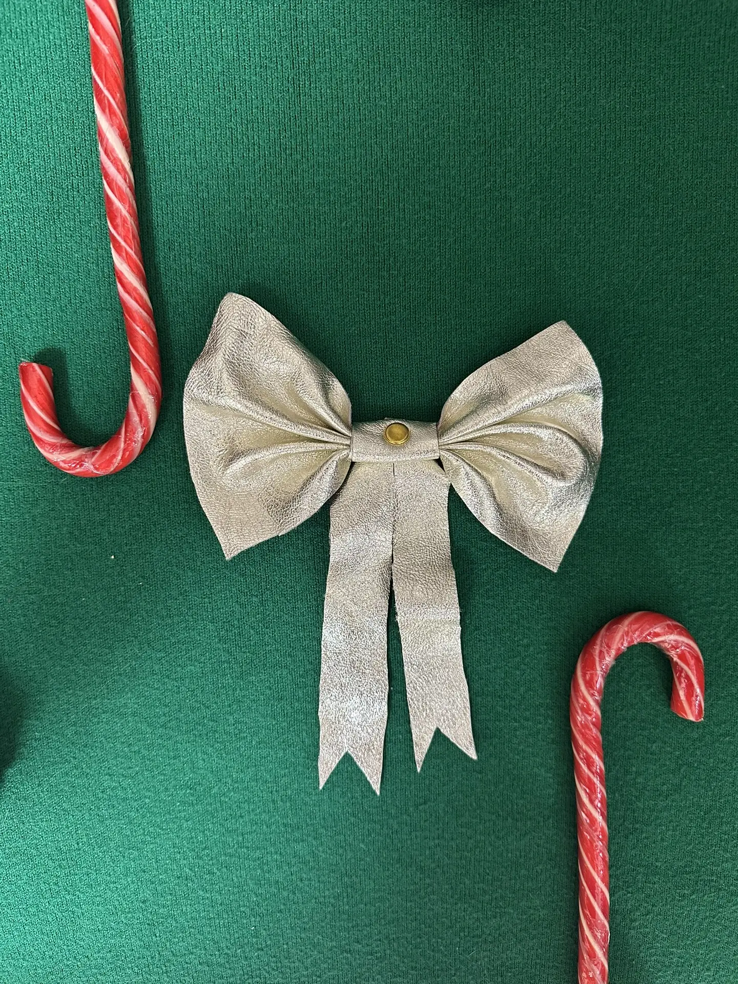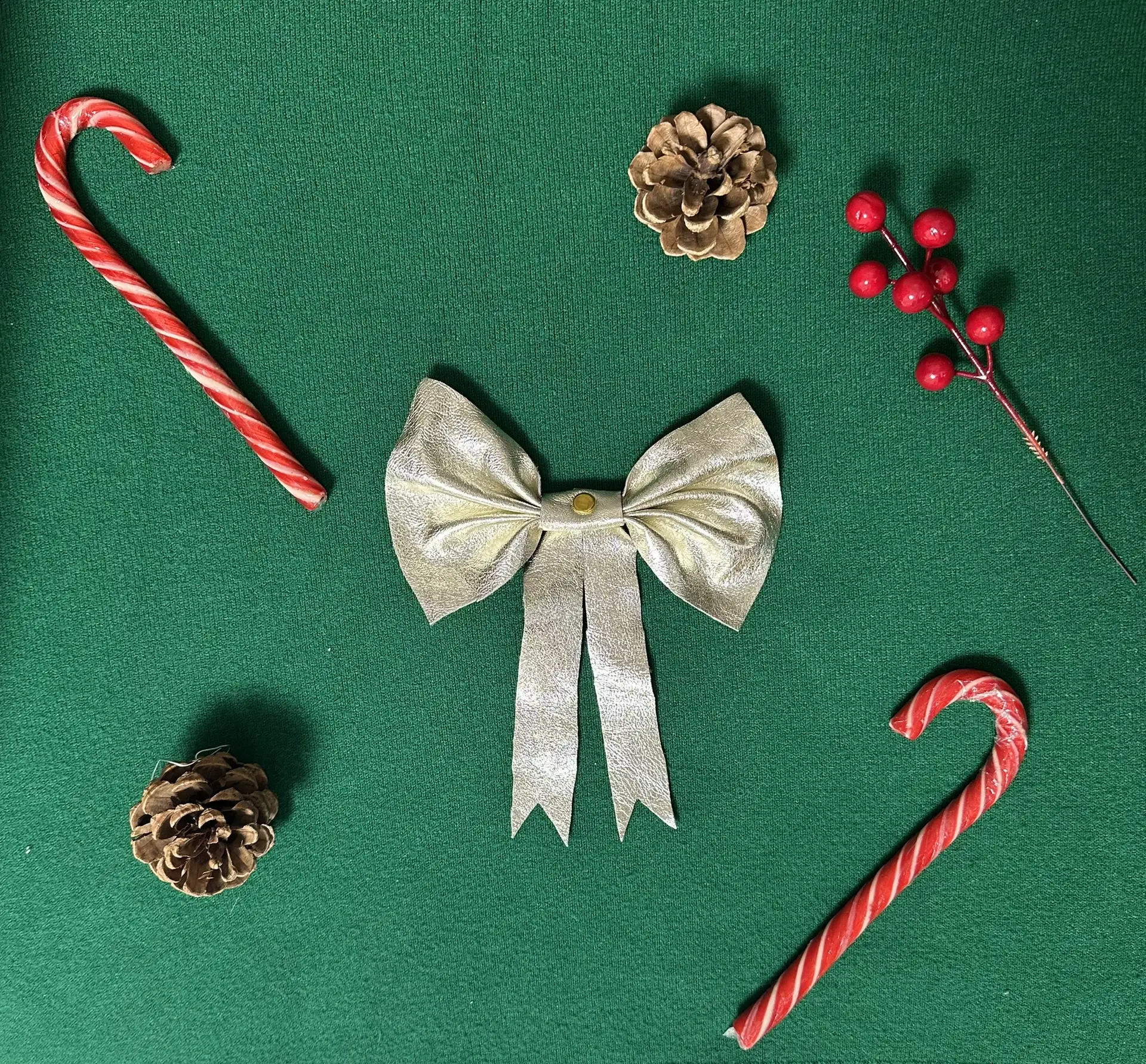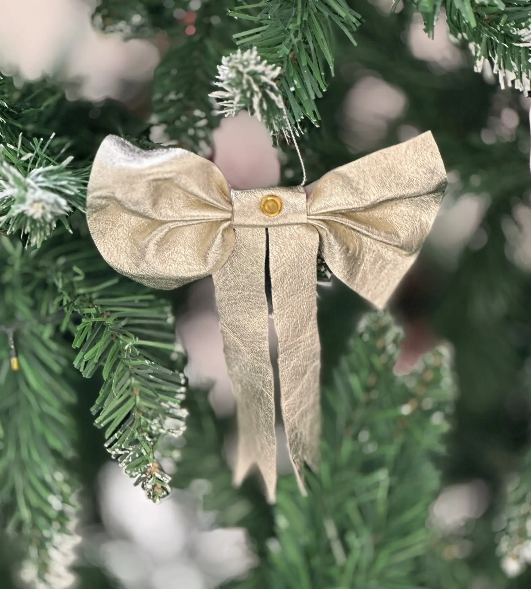 Бант, ёлочное украшение (натуральная кожа, золотой)