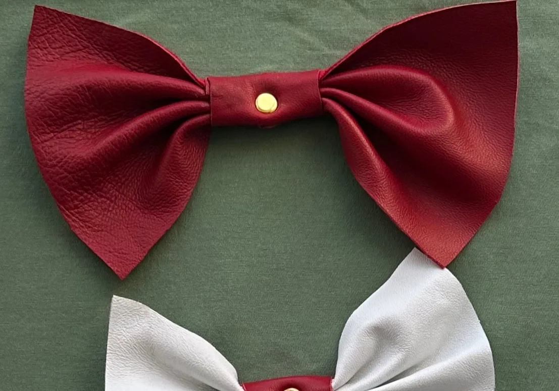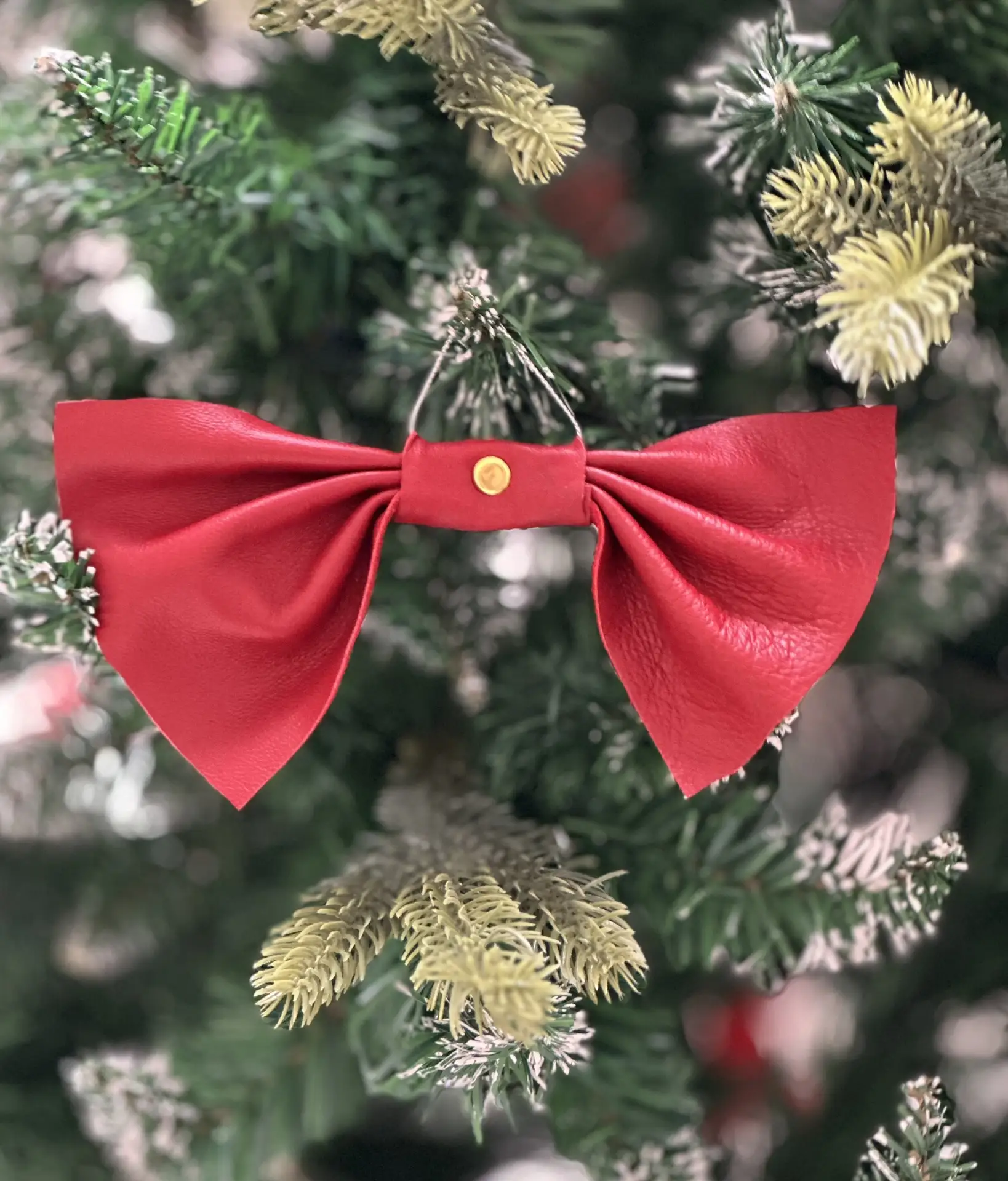 Бант, ёлочное украшение (натуральная кожа, красный, золотой)