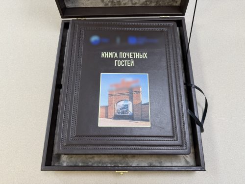 Формат — А4. Книга почётных гостей выполнено из натуральной кожи нашим мастером.